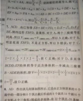 安徽,4月5日,数学,《高中数学 小题狂做 必修第二册RA》:P55,题7。疑惑是四棱锥体积用菱形对角线相乘算底面积再乘以高为什么不对?