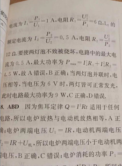 2.这一题的B选项为什么不可以直接用p等于UI 等于6×0.5W 等于3W?