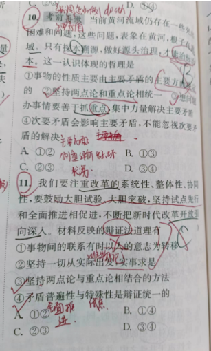高中政治小题狂做必修4,第20页,第10和11题材料怎么体现两点论和重点论的统一?